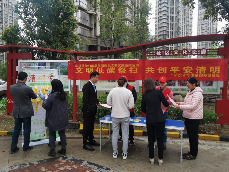 4月1日下午,市礦投公司黨員志愿者深入發(fā)能國際城社區(qū)開展宣傳活動(dòng),引導(dǎo)居民清明祭奠綠色出行,選擇獻(xiàn)花祭奠等文明、低碳的祭奠方式。