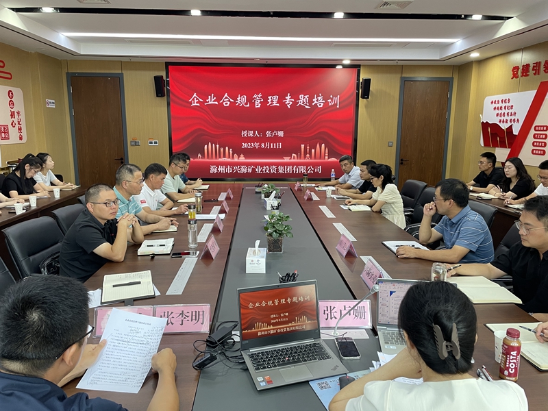 培訓(xùn)邀請(qǐng)安徽蘇滁律師事務(wù)所張盧姍律師從合規(guī)基本概念、合規(guī)發(fā)展歷程、合規(guī)文化機(jī)制、重要合規(guī)文件等方面入手,并結(jié)合礦業(yè)類(lèi)企業(yè)合規(guī)案例實(shí)踐進(jìn)行專(zhuān)題授課。授課內(nèi)容緊密聯(lián)系實(shí)際,對(duì)集團(tuán)公司進(jìn)一步抓好合規(guī)管理工作提供有力的理論支撐。