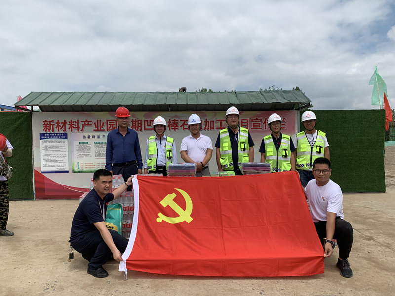 送清涼。6月22日,黨支部書(shū)記魏金龍帶領(lǐng)黨員志愿者到凹凸棒加工廠項(xiàng)目部、玄武巖加工廠項(xiàng)目部、環(huán)山道路項(xiàng)目部,為施工一線(xiàn)的黨員職工送去礦泉水、綠豆、西瓜、藿香正氣水等防暑降溫物資。